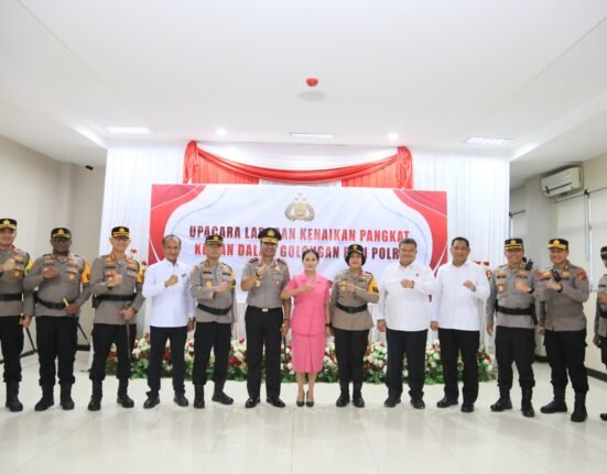 JEJAKPAPUA.COM.MANOKWARI – Kepolisian Daerah (Polda) Papua Barat menggelar Upacara Korp Raport kenaikan pangkat ke dalam golongan Perwira Tinggi (Pati) Polri.