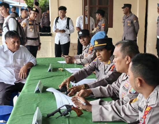 Pastikan Sesuai Aturan, Polresta Manokwari Gelar Pemeriksaan Senjata Api Personel