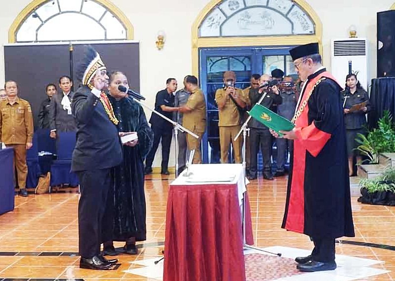 Pengucapan sumpah/janji jabatan dipandu langsung Ketua Pengadilan Tinggi Papua Barat, Dr. Wayan Karya, S.H., M.Hum., sesuai mekanisme dan ketentuan peraturan perundang-undangan yang berlaku.