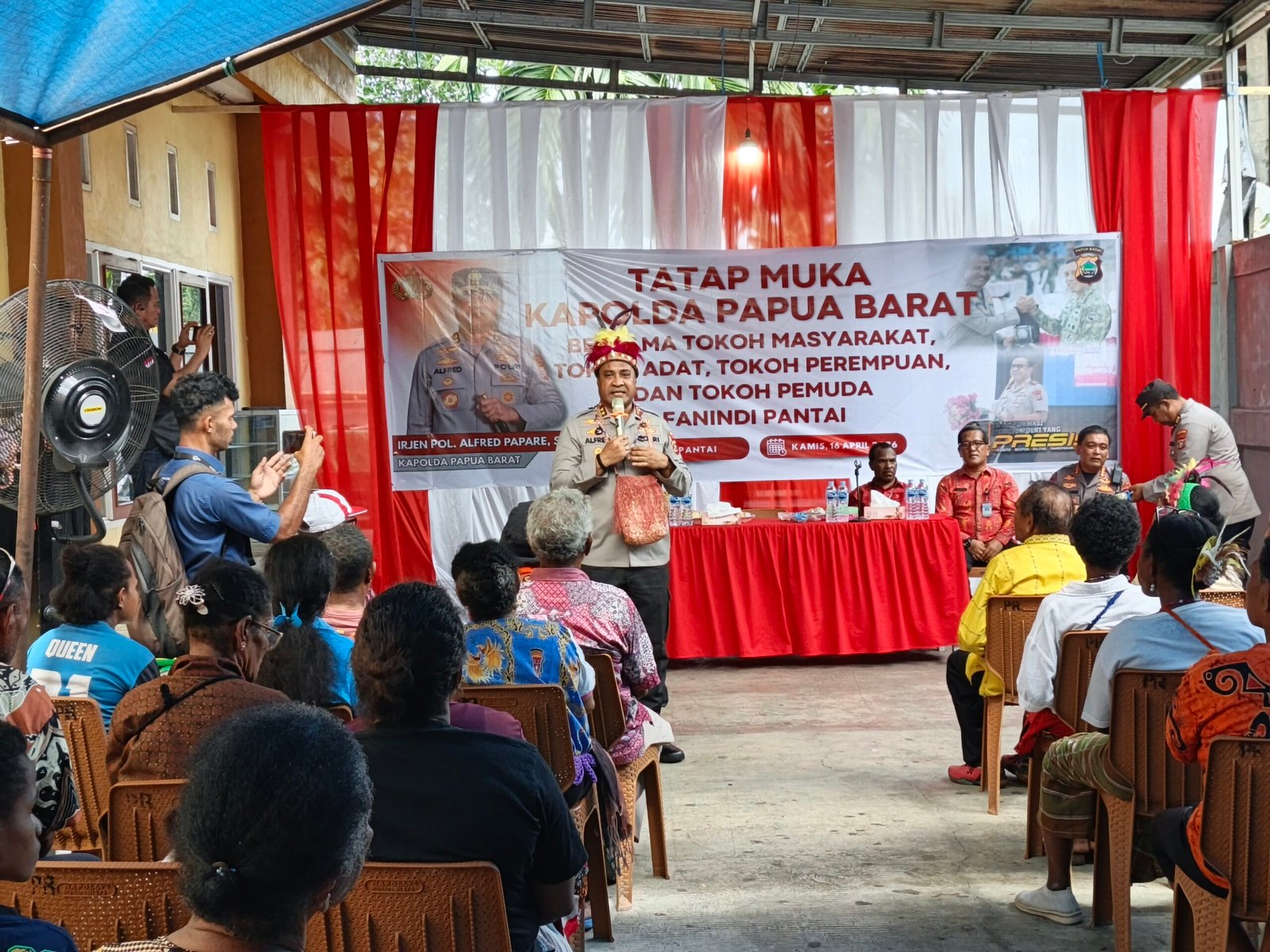JEJAKPAPUA.COM.MANOKWARI – Kapolda Papua Barat, Alfred Papare, mengajak masyarakat Fanindi Pantai untuk bersama-sama menjaga keamanan dan ketertiban masyarakat (kamtibmas) dalam kegiatan tatap muka bersama tokoh masyarakat, tokoh adat, tokoh perempuan, dan tokoh pemuda, Kamis (16/4/2026).