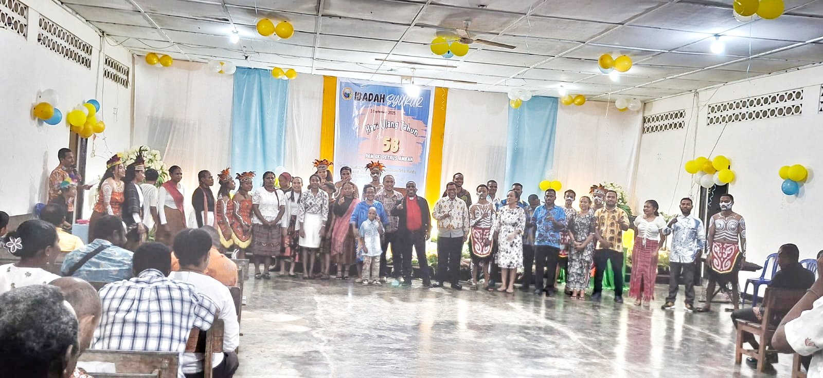 Ibadah syukur digelar di Aula PAM GKI Petrus Amban, dilanjutkan dengan pemotongan kue ulang tahun serta pembagian hadiah lomba. Perayaan tahun ini mengusung tema “Kasih Kristus Menggerakkan Kemandirian Gereja, Mewujudkan Kesejahteraan Bersama” (II Korintus 5:18-19, Mazmur 72:2-3).