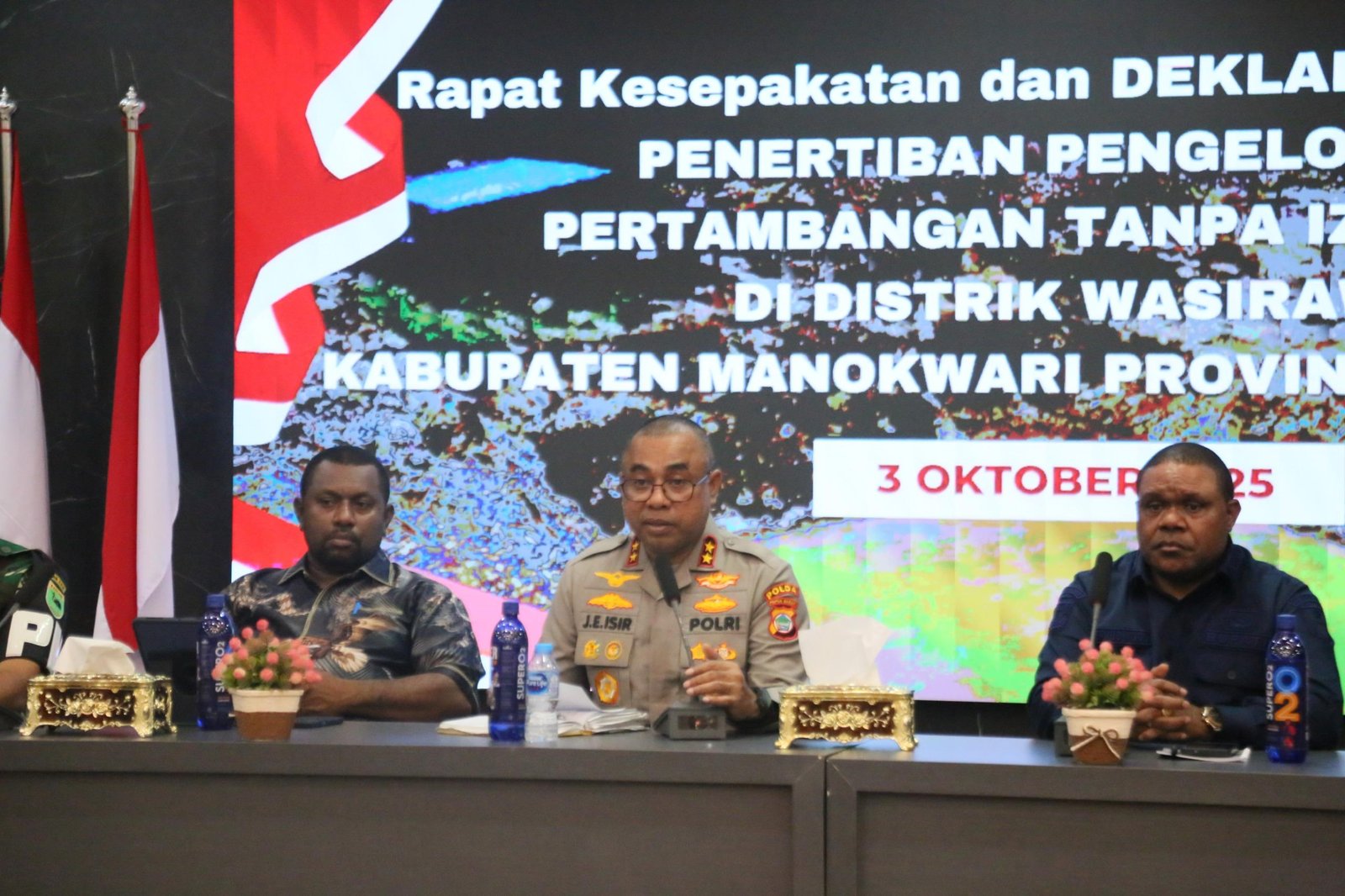 Dalam Deklarasi Penertiban Aktivitas Pertambangan Tanpa Izin (PETI) hadir secara langsung Kapolda Papua Barat Irjen Pol Johnny Eddizon Isir di Aula Sasana Karya, Kantorl Bupati Manokwari, Jumat (3/10/2025).