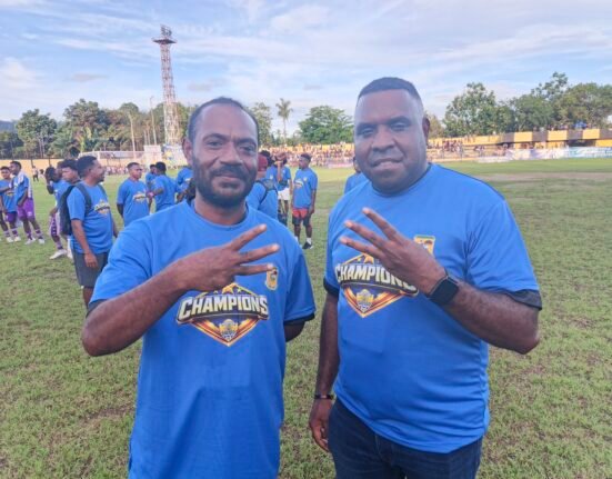 JEJKAKPAPUA.COM.MANOKWARI – Ribuan penonton memadati Stadion Sanggeng saat laga final mempertemukan Persipegaf melawan Ransiki FC, Senin (20/4/2026).