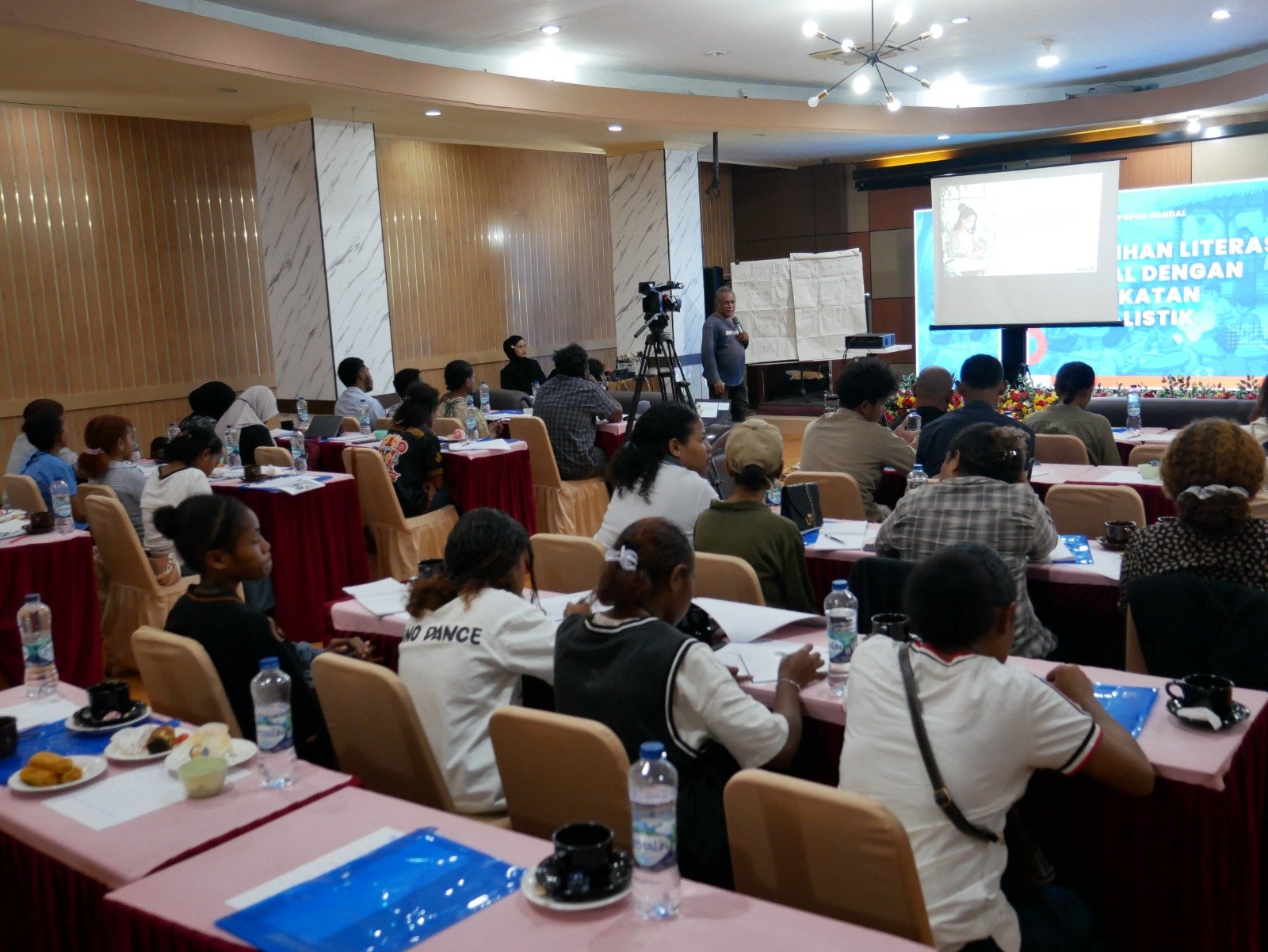 JEJAKPAPUA.COM, MANOKWARI – Yayasan Anak Papua Handal menyelenggarakan Pelatihan Literasi Digital dengan Pendekatan Jurnalistik di Manokwari, bertempat di Billy Jaya Hotel, Senin (29/12). Kegiatan dimulai pukul 08.00 WIT dan berlangsung hingga sore hari, dengan total 30 peserta yang merupakan anak-anak muda Papua berbakat. Pelatihan ini menghadirkan narasumber utama, Alex Tethol, seorang jurnalis yang membawakan materi terkait pelatihan penulisan, cara cepat menulis berita, dan praktik menulis berita.