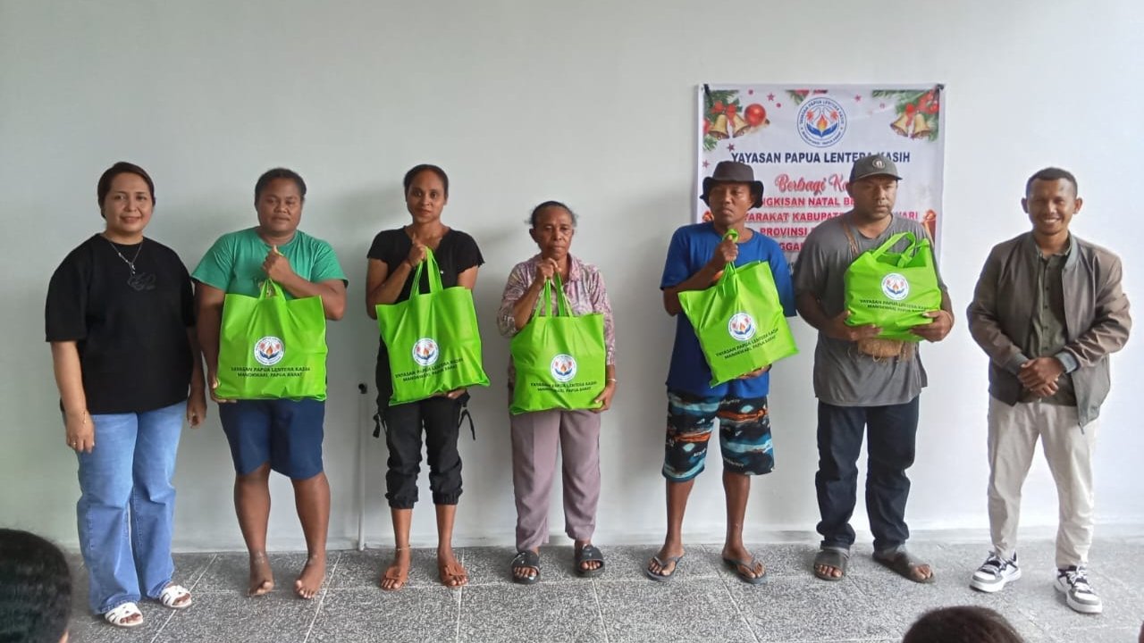JEJAKPAPUA.COM, MANOKWARI – Menyongsong Natal tahun 2025, Yayasan Papua Lentera Kasih membagikan bingkisan natal kepada masyarakat di Manokwari.